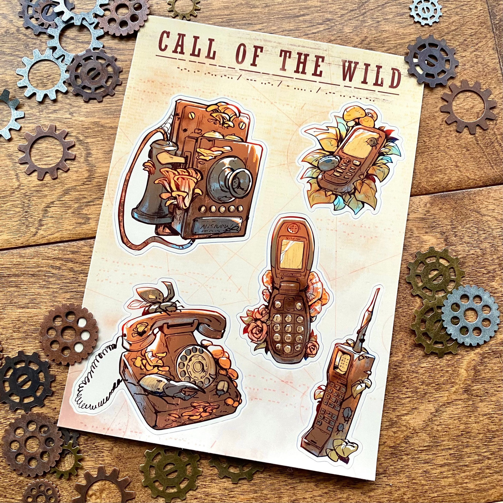Detailed sticker sheets of cool tech, nature, and books with a steampunk/solarpunk vibe! Great for journalling, scrapbooking, decorating tabletop roleplaying game character sheets, or showing off your love for this niche genre!