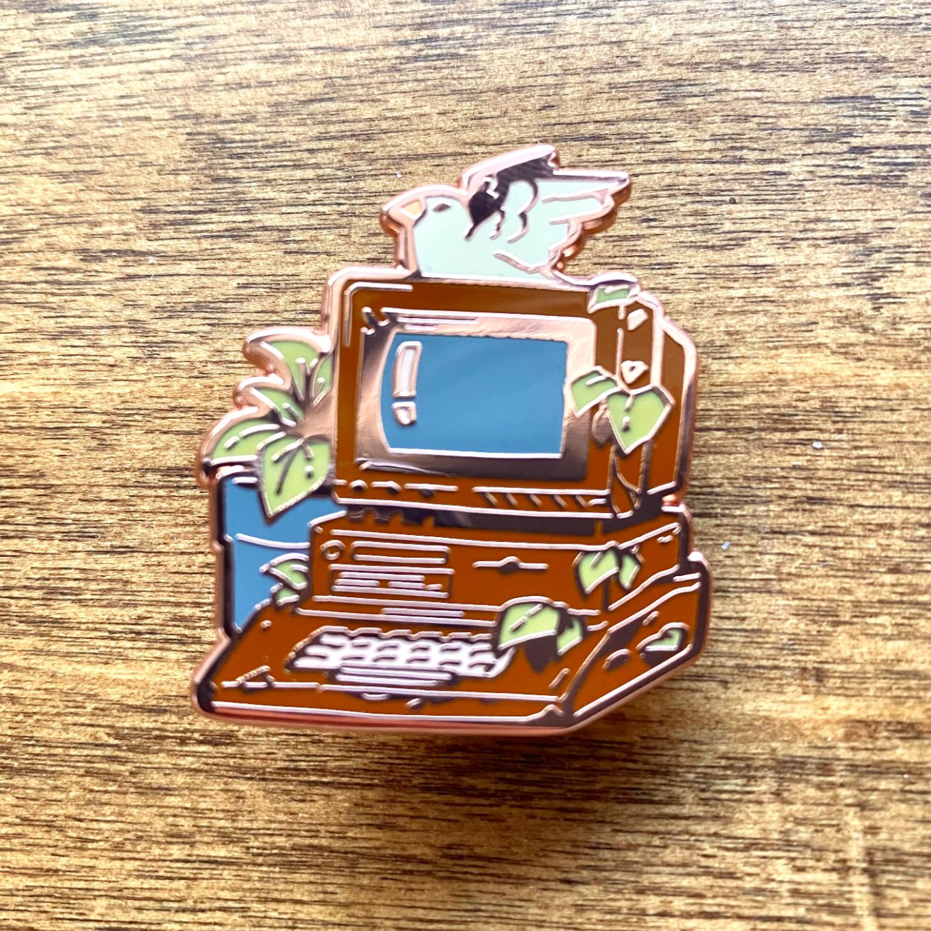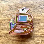 Enamel pins of nostalgic technology.